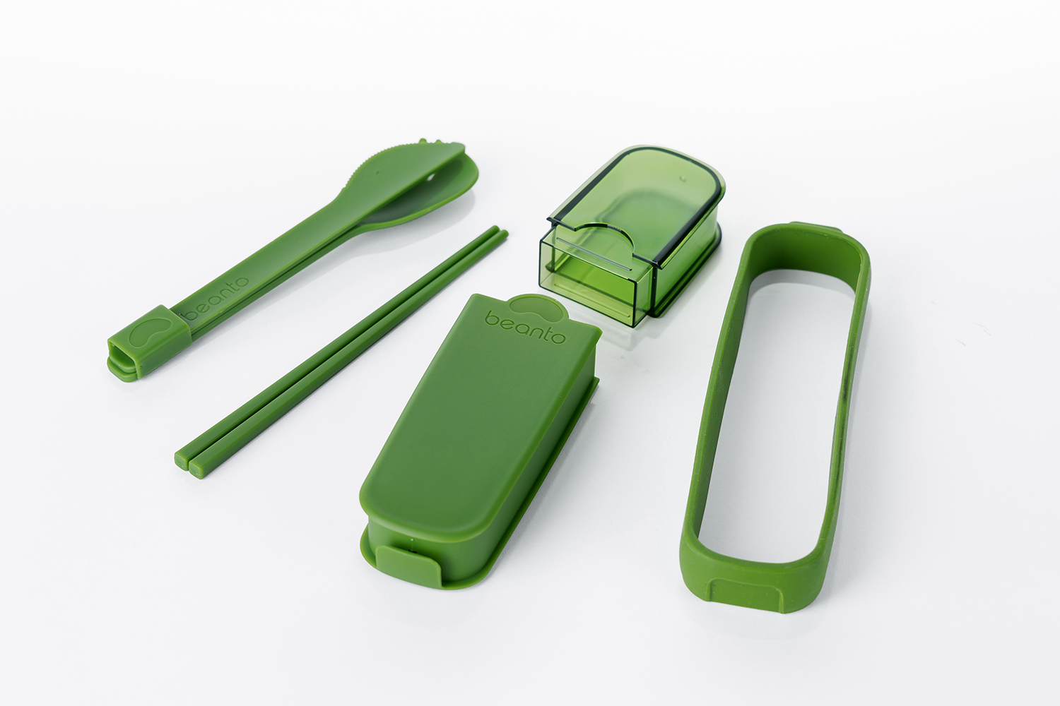 Convenient. Use the strap to attach the cutlery to the Beanto Bowl.